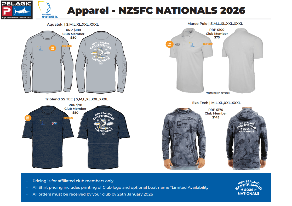 Represent our Club as we go head-to-head with fishing clubs around New Zealand. A tournament organised by New Zealand Sport Fishing Council.